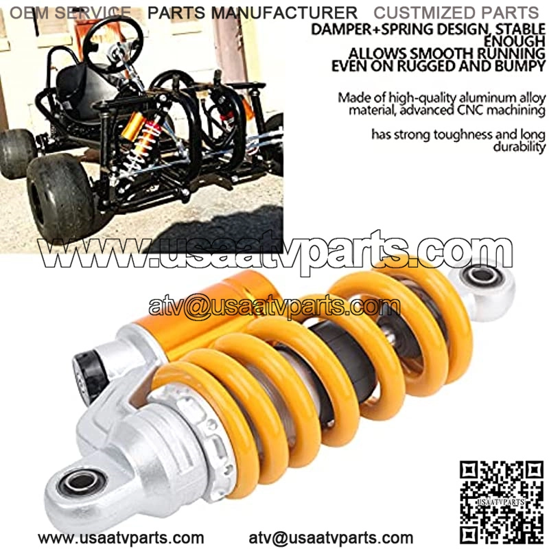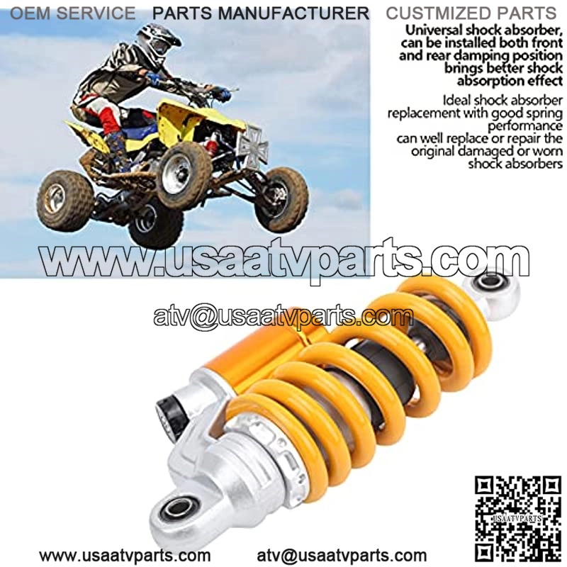 Professional :Rear shock absorber, with spring adjustment, it is suitable for quad bikes,some pit bikes,off-road vehicles and other projects, professionally manufactured, reliable performance, can quickly absorb impact on the softest road, improve safet, use this shock damper to give you better ride quality.