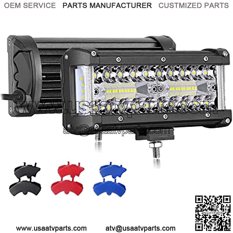 LATEST DESIGN – The 7″ led light bar contains triple row high-intensity LEDs surround by optical reflectors for maximize light utilization and extra side shooter LEDs, total 100pcs LEDs aim to emits awesome 300 watts & 30,000 raw lumens output of cool white 6000K super bright light. The side shooter led lights equipped with 2pcs die-cast aluminum mounting brackets for increase stability and durability, lighting up your entire forward road while without any scruples.PERFECT ILLUMINATE COVERAGE – Combination of 150?? flood & 15?? spot combo beam to achieve long distance irradiation while covering broader range, the side shooter LEDs make the led light pod get 210?? illuminate range, not only for extremely speed driving but also great for any where you need.PINNACLE OF PERFORMANCE – The led lights offroad passed IP68 rated test, it is waterproof, dustproof, rustproof, shockproof, anti-corrosive and resistance to condensation for handle the harsh environments. Excellent heat-conducte heat sin