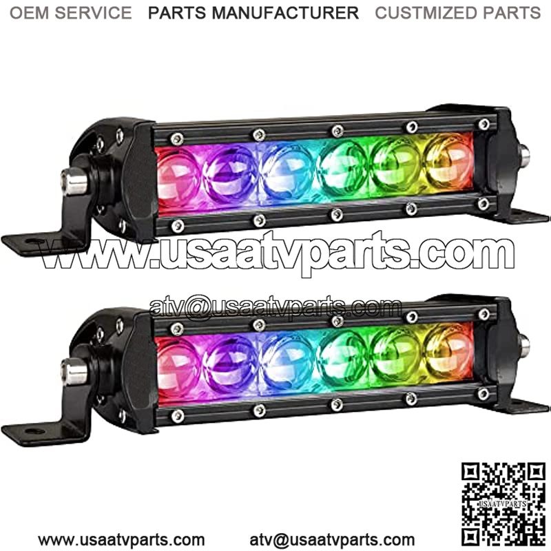 Single Row Led Light Bar Ultra-Thin 7inch 30watts (5w/Led) Very Bright Color Chasing Lights Controlled by Bluetooth App&Remote Spot Driving Light Off Road Lights for Truck ATV, UTV, SUV Pack 2