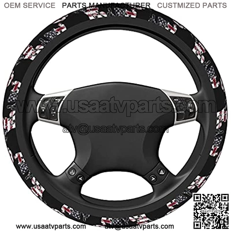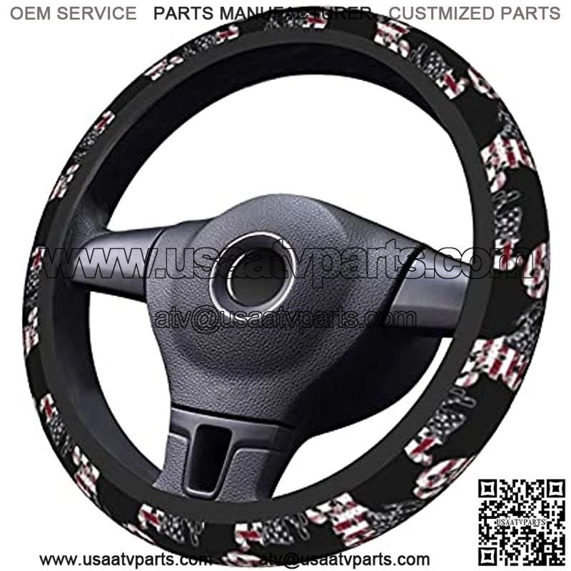 Snowmobile Us Flag Universal 15 Inch Steering Wheel Covers With Cloth For Men’S Women’S Fit For Suvs,Sedans,Cars,Vans