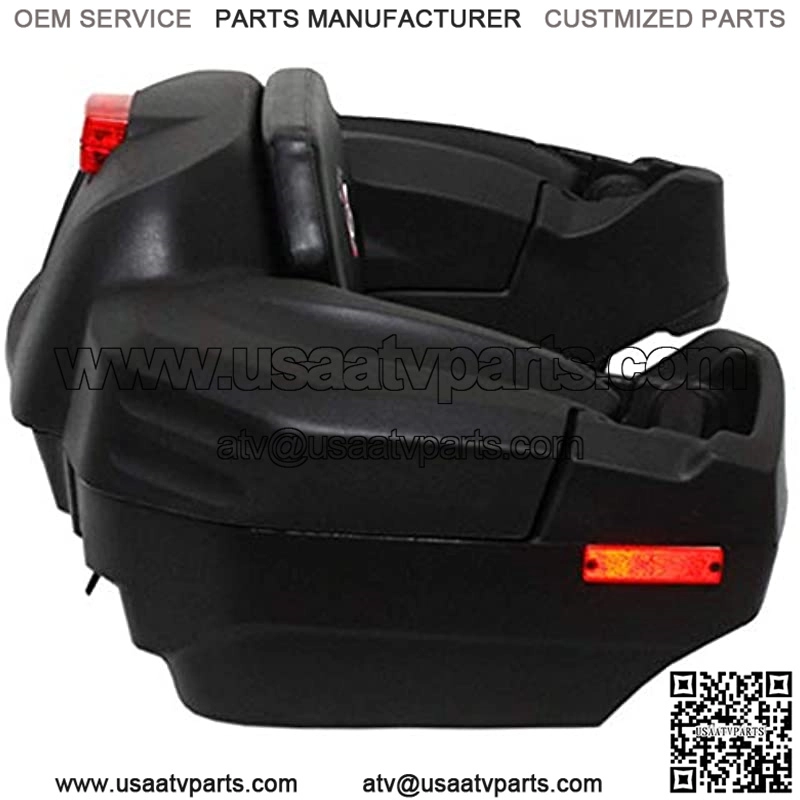 This standard unit has spacious storage room (can store up to 2 helmets) plus it has a specially designed compartment for your gas can or cooler. Can be installed on all one passenger ATV’s. The Wes Classic Standard model is equipped with a security reflector on each side and one rear break light (wire connection is required). It also comes with an easy to use elastic system and key lock lid.