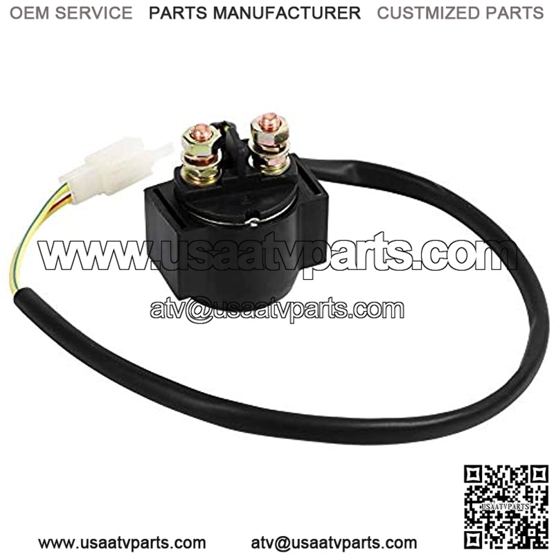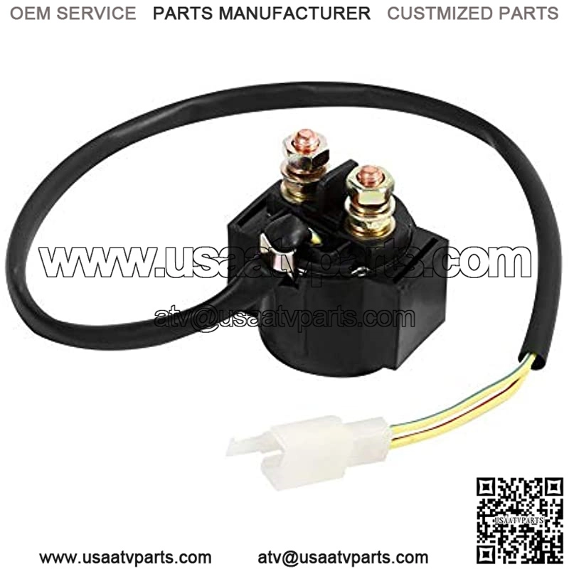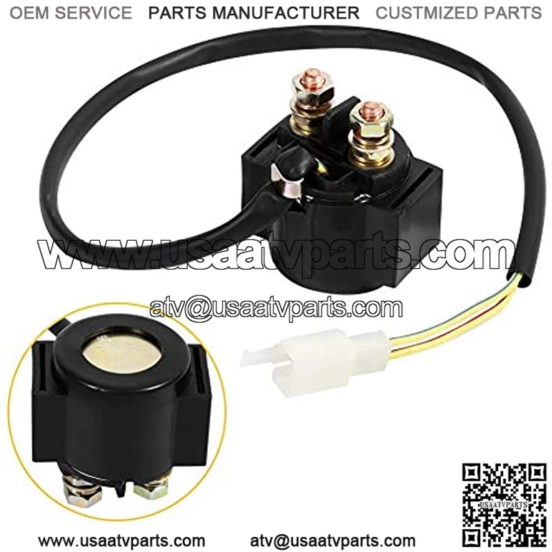 ?? Starter Solenoid Relay ??It is GY6 Scooter moped ATV 50cc 125cc 150cc Starter Solenoid Relay.?? 2 Wire 2 Pin Male ??Solenoid has a 2 wire 2 pin male connector end, Hundreds of uses include- starter kills, domelight supervision, trunk release, polarity change, power door lock/actuator control.??Application ??Used for electronic applications to turn on / off most device. Such a practical tool you will need it.?? Effect ??It is used when a device draws heavy amperage. This is a perfect choice if you are in need of a Starter Relay!?? Fitment ??This is the perfect replacement. Direct plug-in, works with many ATVs and karts.Product descriptionThis starter solenoid relay fit for many ATVs and karts. Used for electronic applications to turn on / off most device. It is used when a device draws heavy amperage. While this solenoid has a 2 wire 2 pin male connector end and works with many ATVs and karts. Dependable performance with competitive price.Features: 1. It is GY6 Scooter moped ATV 50cc 125cc 150