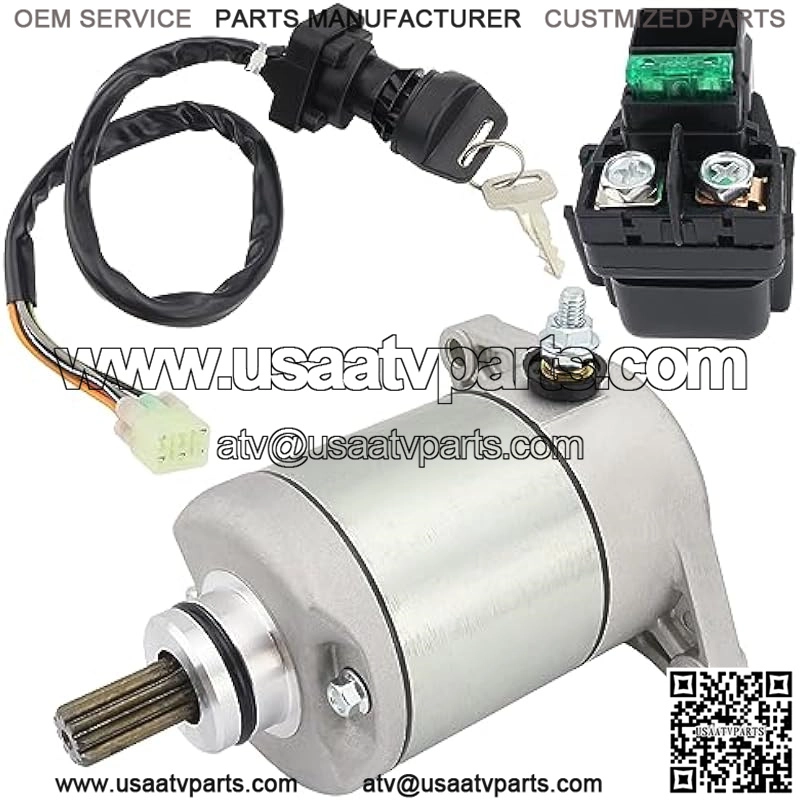 Starter w/Relay & Ignition Switch for Suzuki Eiger 400 2002-2007 2WD 4WD LT-A400 LT-F400 LT-F400F LT-A400F LT-A400C, 31100-38F00 18809 18840, 2002 2003 2004 2005 2006 2007 Eiger 400 Starter