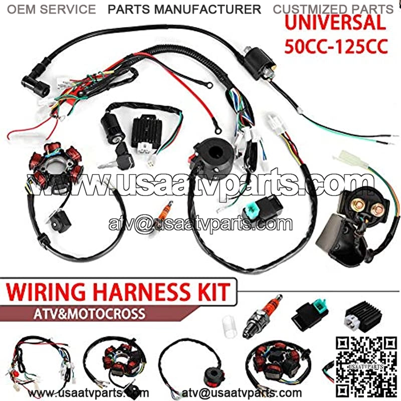 sundan Quad Wire Harness Suitable Complete Wiring Harness Kit Wire Loom Electrics Stator Coil CDI for 50cc 70cc 90cc 110cc 125cc Chinese Electric Start ATV Quad Pit Dirt Bike Buggy Go Kart