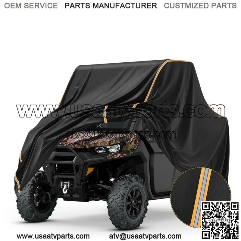 Description:Size: 122.05″ x 74.80″ x 68.9″ (310x180x175cm)Color: BlackMaterial: 210D Oxford MATERIAL Features:1. Reflective Strip- High Visibility:The reflective strips usually sewn on safety garment, such as safety vest,reflective jacket, safety work wear, bags and tents. It can helps the eye perceive objects in poor light conditions when illuminated by a light source. 2. We use it on our UTV cover, then you can find your vehicle easily at night and people will bypass your vehicle, avoid scratch or accident. 3. Protects your UTV from all kinds of rain, snow, ice, dirt and more. Preserve your machine’s paint and parts with this top quality Black UTV Cover. 4. Heavy duty 210D Oxford WATERPROOF MATERIAL is just what the serious UTV owner wants. Heavy enough it won’t blow way in strong winds, also thanks to the elastic band around the bottom that secures the cover to your machine. 5. Keep Your UTV Clean from all the snow, dust, sap, bugs and more. Nothing is more frustrating than having to clean your machine every time you use it. With this cover your UTV will always be pristine. Simply remove the cover, jump on, and go! Fit for:Universal fit for 2 seater UTV’sCompatible with Yamaha Rhino 450 660 700Compatible with Yamaha VIKING 700 EPS SECompatible with Polaris Ranger XP 1000/800/900/570 Package:1 set , also include a storage bag