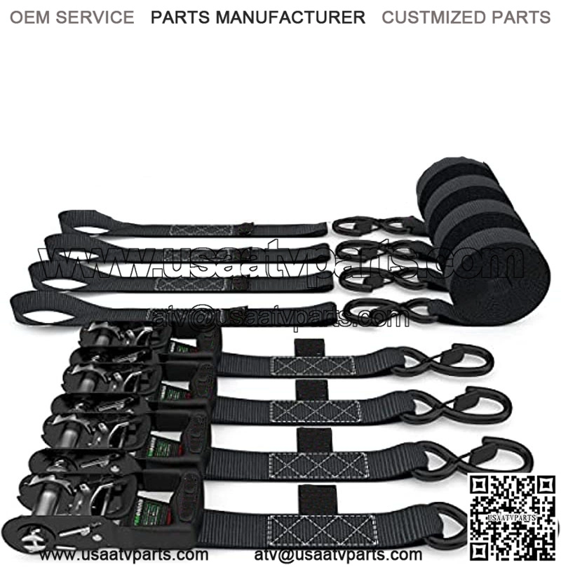 Tie Down Kit, 5,208 Break Strength – Includes (4) Heavy Duty 1.6″ x 8′ Rachet Tiedowns with Padded Handles & Coated Chromoly S Hooks + (4) Soft Loop Tie-Downs (Black 4-Pack)