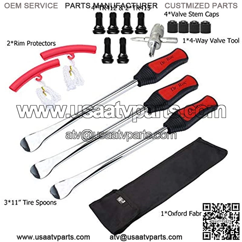 Tire Spoon Lever Dirt Bike Lawn Mower Motorcycle Tire Changing Tools with Durable Bag 3 Tire Irons 2 Rim Protectors 1 Valve Stems Set TR412 TR413