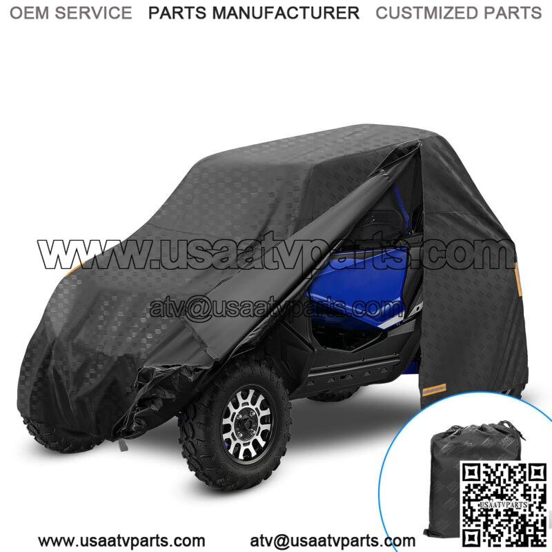 Description:Size:131″L x 54″W x 69″H ( 333*137*175cm ) Color: BlackMaterail: 420D Oxford ( More Durable than normal 210D ) Features:-??Side Driver’s Seat Zipper?? Specially designed waterproof zipper in the driver’s seat allows you to take items have forgotten from the cab at any time, no need to remove all the cover for rzr. -??Five Reflective Strips?? Storage cover is specially designed with four reflective strips on both sides, increasing the visual of your utv to alarm pedestrians and passing vehicles even at night without street lights. Besides, one of the reflective strip near the zipper, is easy to find the waterproof zipper. -??2 Air Vents?? Air vents of both sides of the top of the UTV cover can reduce the temperature inside the Talon cover in summer, avoid moisture accumulation on the back of the Talon cover, and increase the service life of your vehicle, and will reduce your utv temperature in summer to provide a comfortable environment for you and your partner when you return to the cab. -??Heavy Duty Material?? This utv cover is made of 420D oxford waterproof material and use double stitching process, which is more tear-resistant than ordinary 210D material, cooperate with adjustable elastic cord and 2 windproof straps at the bottom to avoid being blown off by the wild wind. ??Universal Fitment?? The dimension of the Kemimoto UTV covers are 131″L x 54″W x 69″H??which is compatible with 2019-2022 Talon 1000r/1000x, Polaris Ranger 500/570, Kawasaki Teryx, Kawasaki Mule, and Viking. Fitment:Universal fit for 2 seater UTV’sCompatible with:Honda Talon 1000R / 1000XPolaris RZR 900/570/1000 S Trail Polaris Ranger 500/570/EVKawasaki Mule Modelsetc..