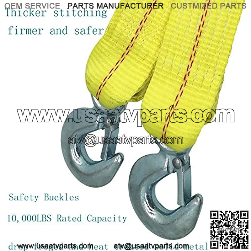??made from high-level polyester??Our Tow Straps Heavy Duty with hooks is 2″ wide, 20ft long??tough and abrasion??tightly moisture and heat resistant ??Two forged and heat treated solid metal hooks?? This tow rope with safety hooks for extra secure towing and easy hook up, ZINC coated finish on hooks offer three times more corrosion resistance , Rated up to 4.54tons max (10,000lb) load capacity ??high visibility yellow strap ??The towing strap works in all climates, and will not stretch, shrink or mildew ??Appropriate for all vehicle types??Our winch strap including Full Size Pickup, SUV, ATV, UTV and boat. Use with Hitch Receiver, Snatch block, Winch, or D Ring Bow Shackles ??100% satisfaction guarantee??come in a storage bag, Roll up the strap and secure in place in free storage bag. KJE team strive to provide you highest quality products and best service