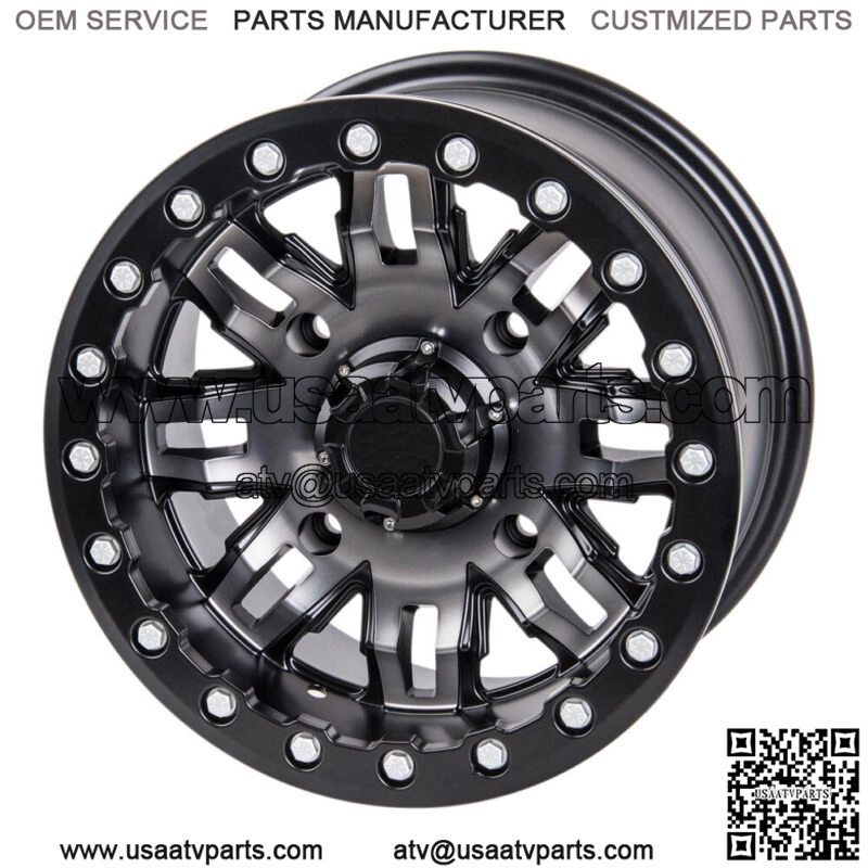 Tusk Teton Beadlock Wheel 15×10 5.0 + 5.0 Gun Metal/Black 4/156 Lug Pattern. See Fitment Chart For Vehicle Model Fitment.