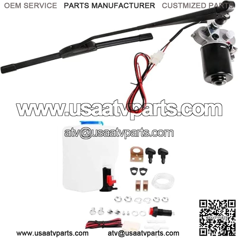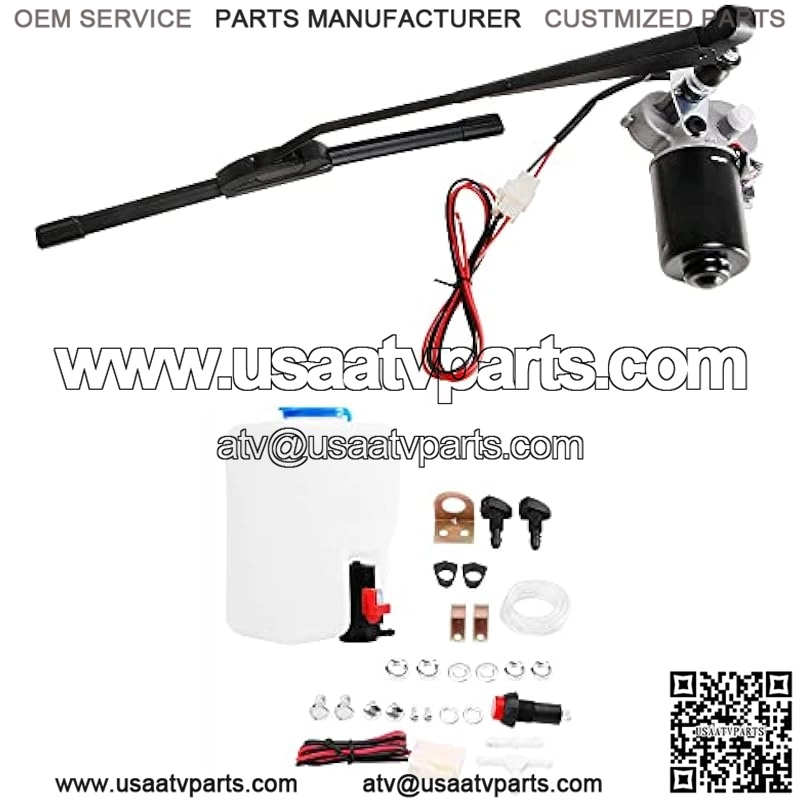 Universal 12V 110 Degree Electric UTV Windshield Wiper Motor Kit with Windshield Washer Pump Kit Fit for Polaris Ranger RZR Kawasaki Honda Pioneer Golf Cart Arm/Blade Size:15.7″/17.7″