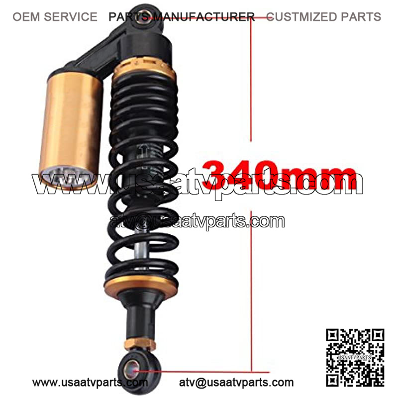 Motorcycle shock absorber universal fit for most vehicles, like Honda/Yamaha/Suzuki/Kawasaki, etc. The diameter of the round hole at the bottom is 12mm. Fit bikes with shock absorbers of 340mm eye to eye distance.
