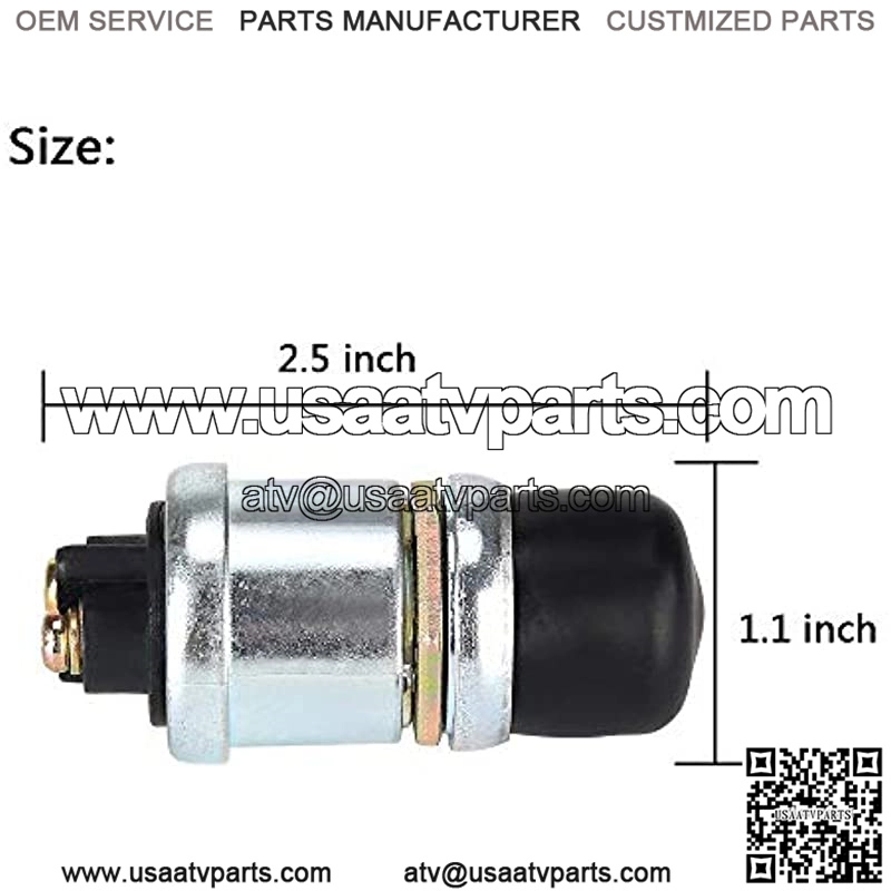 This horn switch works in about any 12 volt scenario. Mounting hole is 5/8 with a stem length of 5/8;