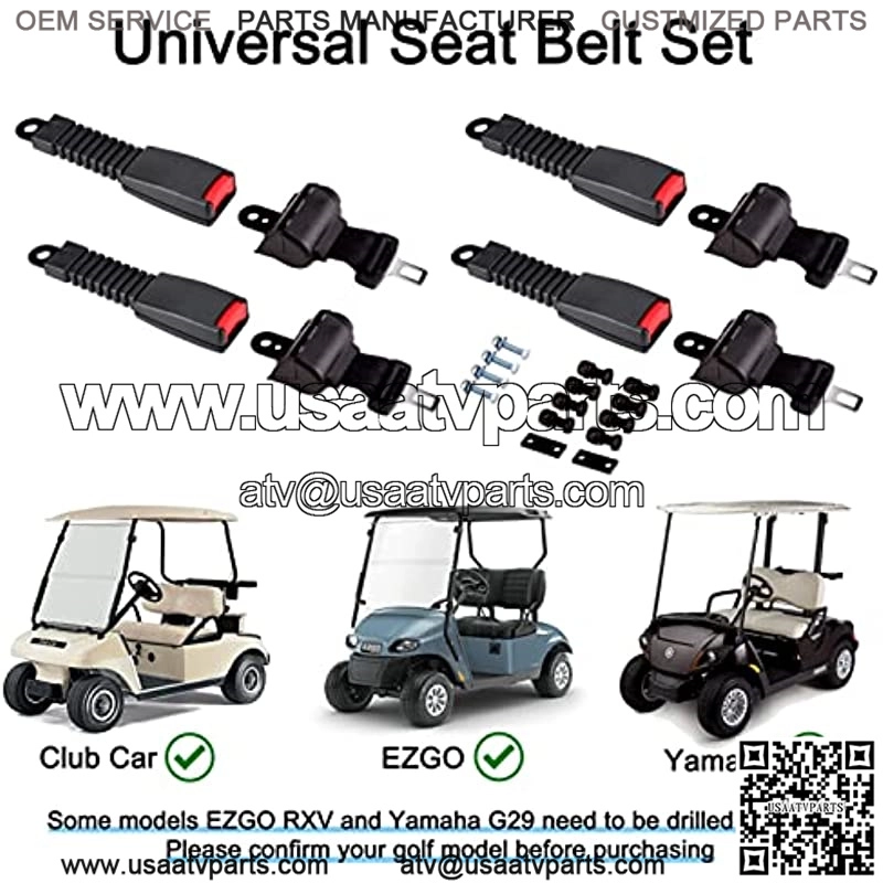 [Widely Compatible]: Universal Golf Cart Retractable Belts Kit Designed to Work on Front Rear Lap Belt.[4 Pack in set]: 4 Pack 42″ beltsRetractable belts kit fits EZGO TXT&RXV Yamaha Drive Club Car DS& Precedent. 2 Point, Auto retractable. Size: 42*2 inch.[Easy to install]: 4 retractable Belts and all necessary installation hardware, you don??t need to drill holes, everything attached very easily.Retractable belt kit works great and keeps the kiddos nice and safe[Keep Your Safe]: Our golf cart seat belts have passed American DOT certification.Belts Bracket Kit make your golf cart legal for street use in your city. passengers like the extra safety and stability??Especially in the back.[ Customer Service]: Any questions, please email us, we will got a reply within 24 hours. We always stand behind and assist you.Golf Cart Accessories ,About us Golf Cart 4PCS 42″ Universal Golf Cart Retractable Seat Belts Front Rear Lap Seat Belts Kit for Golf Cart EZGO Yamaha Club Car, easy to Install, dura