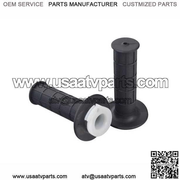 Actually we let you get a pair of two grips; the right side throttle, and the matching left side grip Monster Scooter Parts lets you get a grip and save money with our Universal Grip & Throttle set. Actually we let you get a pair of two grips; the right side throttle, and the matching left side grip. Fits almost all small engine size ATVs & dirt bikes; typical engine sizes of 49cc/50cc through 125cc/150cc.We call these Universal because our fine set of handlebar grips will work on any motorized vehicle sporting 7/8″ handlebar tubes. That means almost any and all electric scooters, electric bicycles, dirt bikes, mini bikes, and even street legal motor scooters.The right grip includes the accelerator plastic insert as pictured, the piece to which the throttle cable end will attach. W