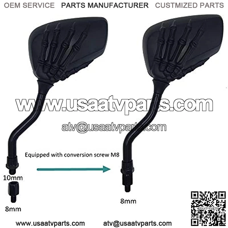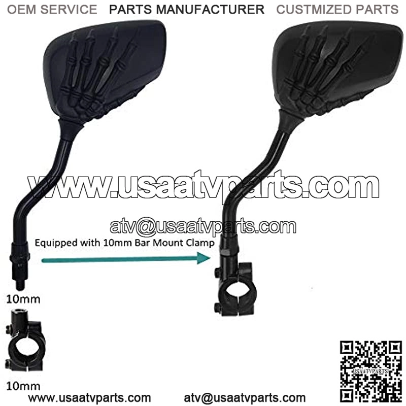 Fitment: Aftermarket Part Rear Mirror with 7/8″ handlebar mount clamp, suitable for most brands of motorbike, Street Bike, ATV, Dirt Bike, E-Bike, BMX Bicycle and Scooter. Universal Motorcycle Convex Rear View Mirror with 10mm&8mm Bolt and 7/8″ Handle Bar Mount Clamp