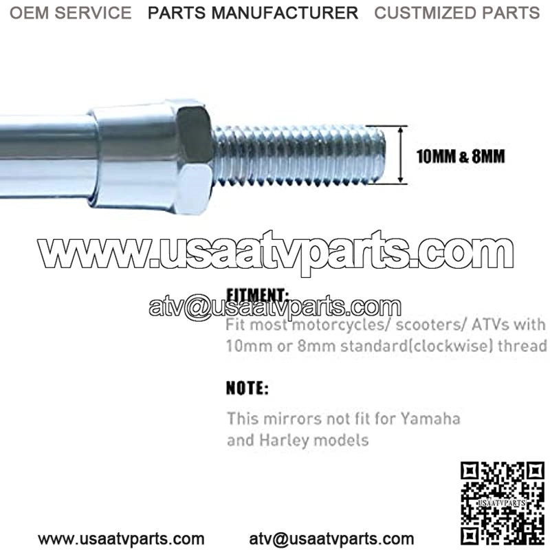 FITMENT: Fit most Motorcycles/ Scooters/ ATVs with 10mm or 8mm standard thread ( Right hand thread ),please kindly noted this mirrors not fit for Yamaha and Harley models