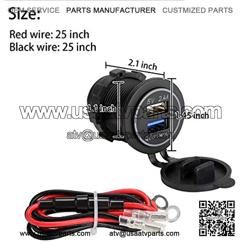 Package included: 1* dual USB socket with blue LED indicator, 1* 25 inches wire with fuse