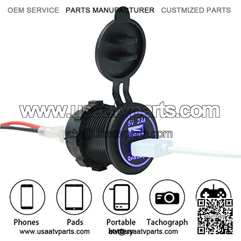 Universal quick charge 3.0 USB charger socket, DC 12V input, dual DC 5V-2.4A output for fast charging phones, tablets, GPS and other devices