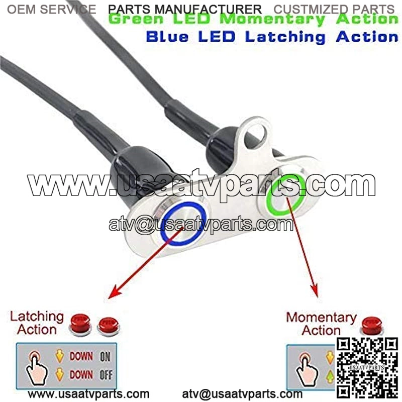 Universal Stainless Steel LED Motorcycle Switch ON-Off Handlebar Adjustable Mount Waterproof Switches Button DC12V Fog Light (Blue-Latching Green-Momentary)