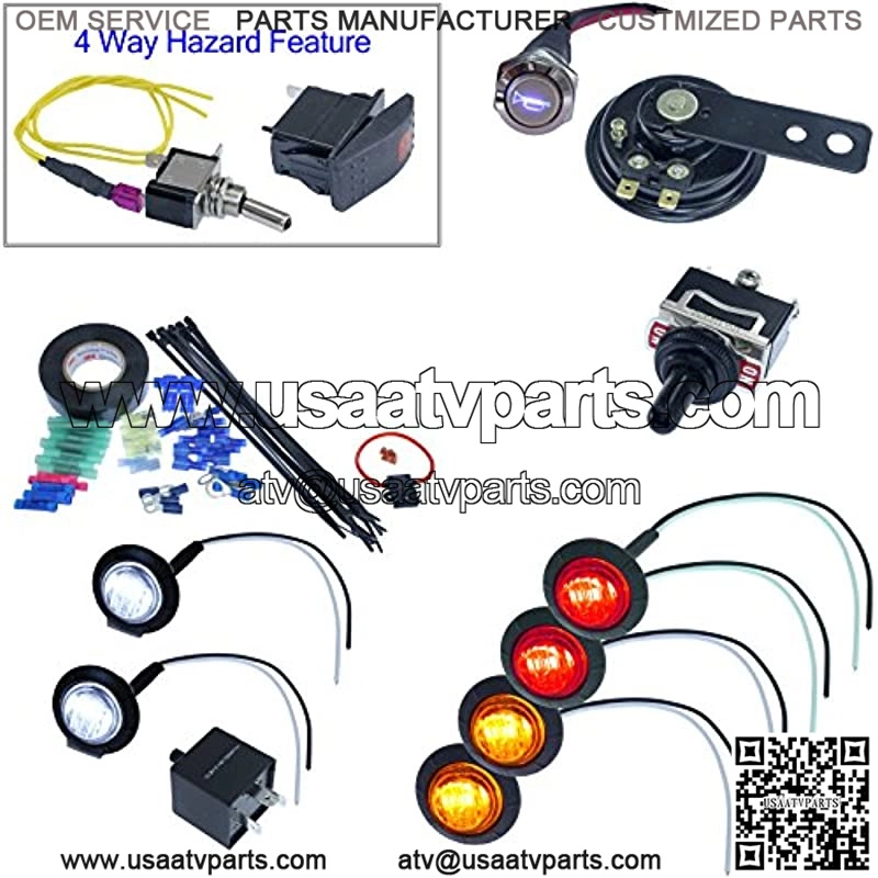 Universal UTV ATV DIY Street Legal Kit Turn Signal System with Horn (Round LED, Toggle Switch)