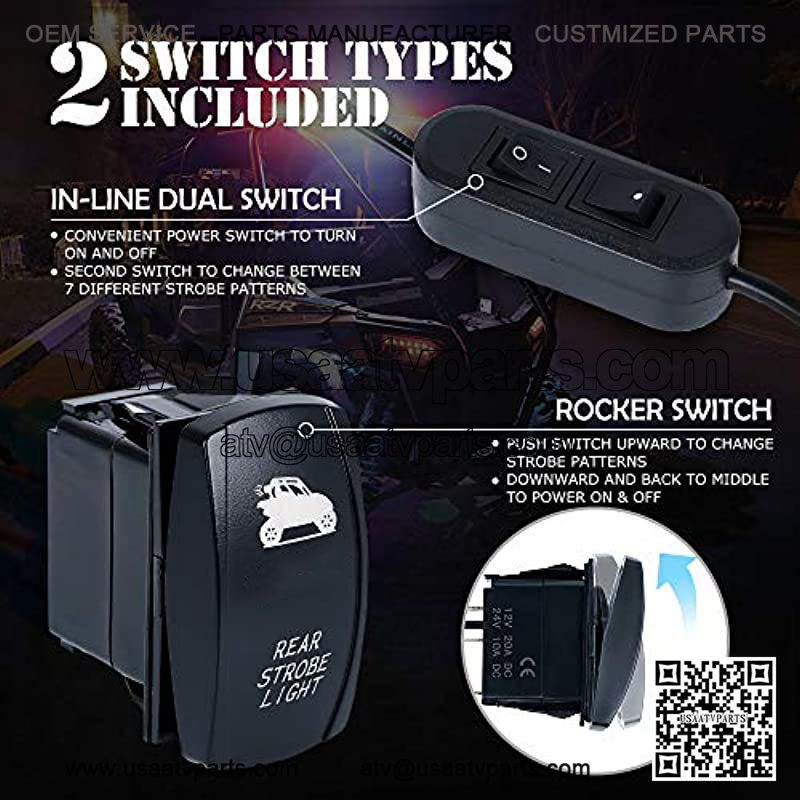 ??SWITCH?? – Convenient Power Switch to Turn On and Off, Second Switch to Change Between 7 Different Strobe Patterns. Independently Control Brake Light, Reverse Light, and Strobe Patterns, Turn Strobe Off by Holding the Strobe Pattern Switch for 3 Seconds.