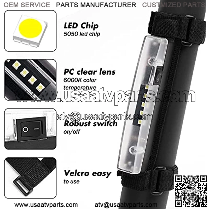 Super Brightness: The universal LED roll bar mount light has high-quality LED chips,2500LM ,25W, 6000K bright white light. If you find that your interior light is not enough,you want more light for night time and for dark areas,the dome Interior Light will solve your problem.No Wiring & Drilling Required: 2 type of installation.1-Use the detachable velcro strap to mount on any square or round bar within 4 inch diameter.2-Use the magnetic back-up attached to all steel surfaces.High Performance: IP68 Waterproof & Rust-Proof & Dust-Proof & Shockproof .Life up 50000 hours.The roll bar mount LED light powered by 3 AAA batteries (not included).Wide Application: Universal interior car light can be a portable led light, mapping light,reading light, work light,engine bay led light ,truck bed light, etc.Very suitable for interior and exterior lighting or decoration of most vehicles.Install on many locations, such as roll bar,roll cage,sun visor,top bar,above your head, back rail of the cab, unde