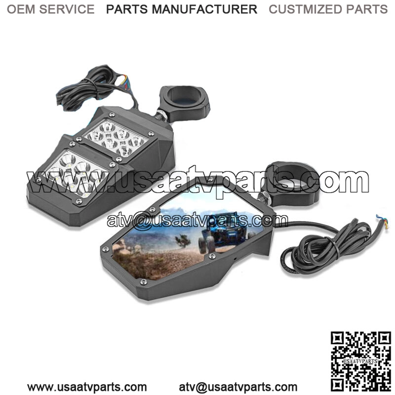 Come with built-in 6000K LED Spot Beam Side view light.Voltage: DC 9-12V, Power: 18W,Waterproof Rate: IP68.