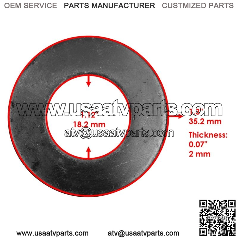 Premium Quality Replacement PartWasher For Suzuki QuadRacer 250 LT250R 1985-1992 / QuadRunner LT-F160 1993-2001 For Suzuki Models:QuadRacer 250 LT250R 1985-1992 QuadRunner LT-F160 1993-2001Order Includes:2 x Washer | 09164-18004 Inner Diameter: 18.2mm | 1.12″Outer Diameter: 35.2mm | 1.3″ Thickness: 2mm | 0.07″**