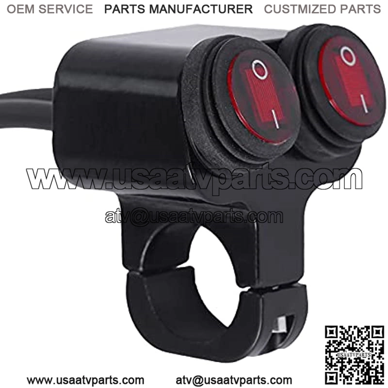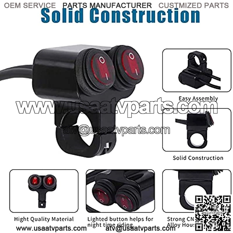 Waterproof Motorcycle ATV 7/8 Light Bar SwitchHandlebar Double Control Kill Button SwitchHeadlight Spotlights Hazard Brake Fog Light ON Off Switches 12v 16A (Red)