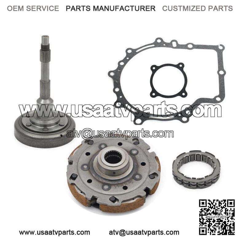 QTY:1 Clutch Housing Cover + 1 Pad Shoe Carrier + 2 Crankcase gaskets + 1 One Way Bearing